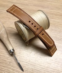 Double Box-stitch “Vintage” watch strap with contrast cream edges